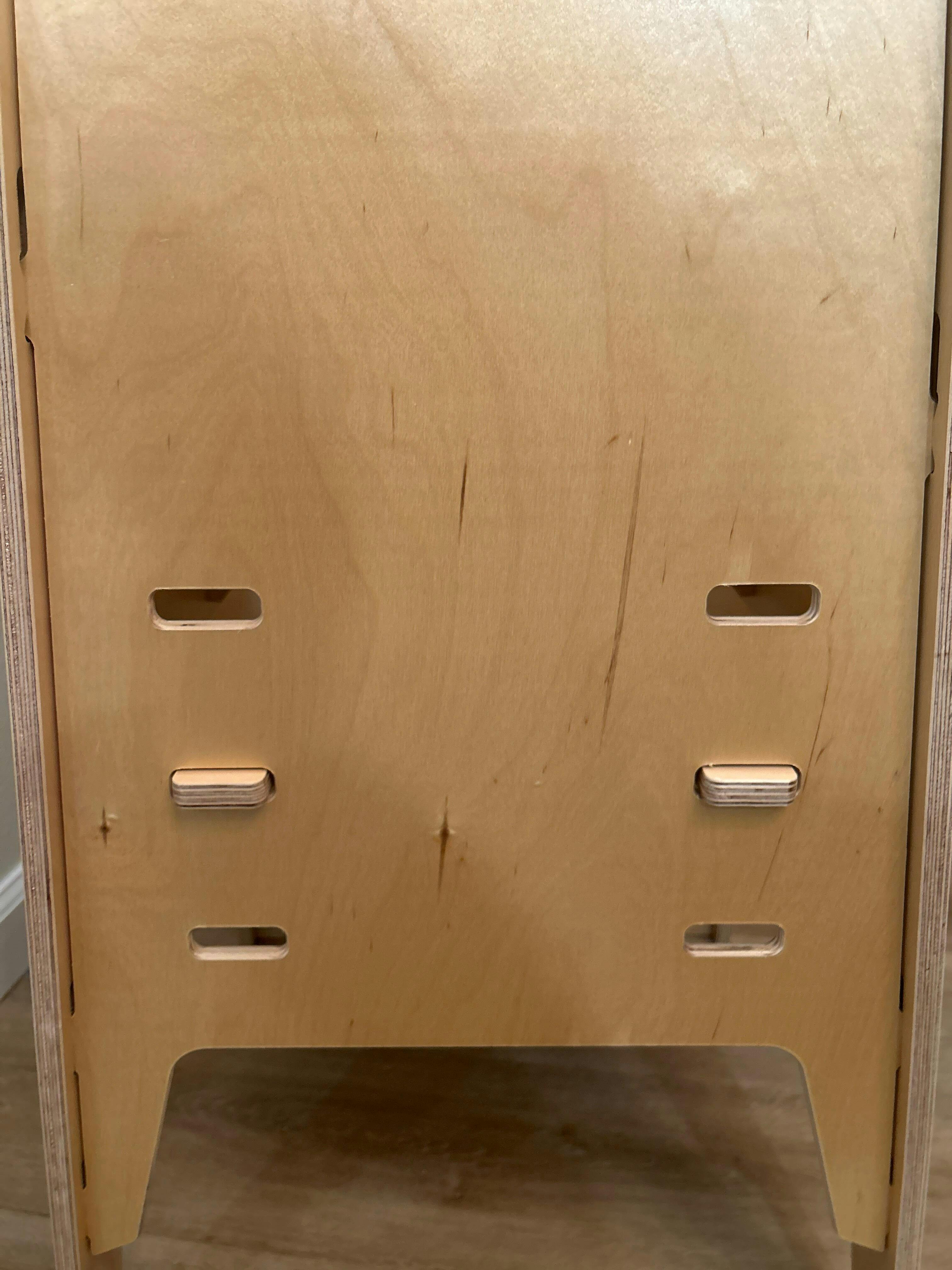 The Toddler Tower comes with clear water-based finished edges. Additional information on our materials can be found on our Materials Page.