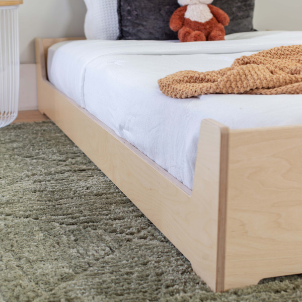 Unlike traditional beds, a Montessori floor bed is designed low to the ground so children can climb in and out independently. Every aspect, from its height and proportions to accessibility, is guided by Montessori principles for a developmentally supportive space for your child.